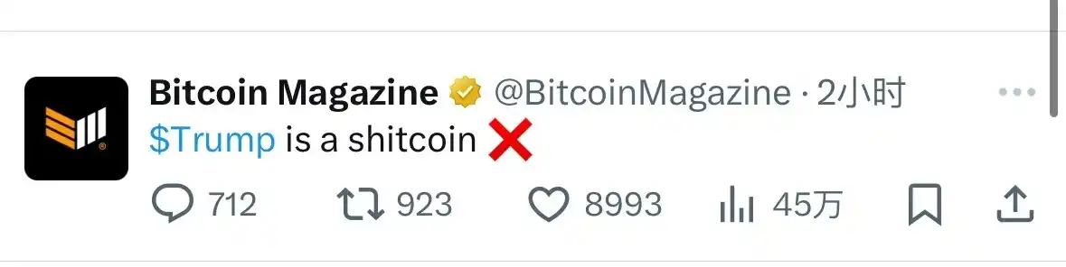 就连特朗普比特币会议的主办方《比特币杂志》也直接发文称“特朗普是垃圾币”。估计小编的钱包也遭受了同样的待遇。