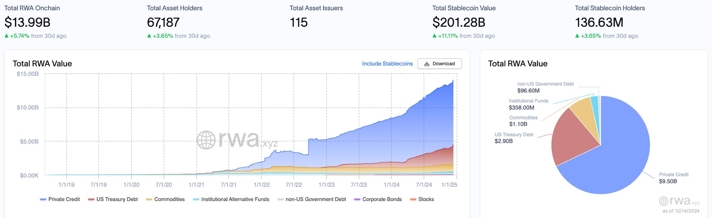 RWA.xyz数据显示,截至12月14日,RWA拥有67,187名持有人,资产发行人数量达到115家,总市值达到1399亿美元。包括币安在内的 Web3 巨头预测,到 2030 年,RWA 市场规模预计将扩大到 16 万亿美元。这种潜力巨大的市场结构及其稳定收益带来的投资吸引力正逐渐成为 DeFi 生态中不可或缺的重要组成部分。