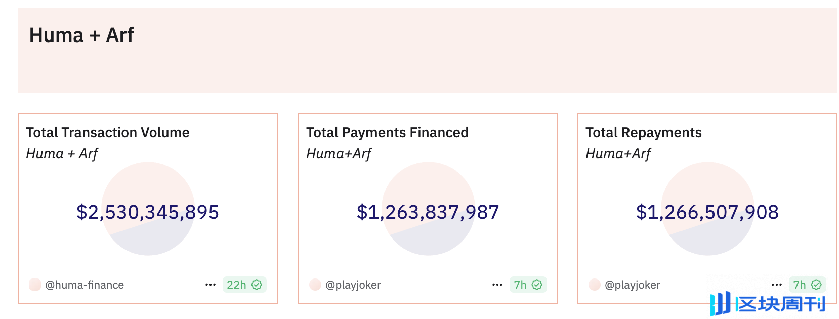 Huma的主要客户来自英国、美国、法国、新加坡等发达国家。这些地区的坏账率极低,账期通常为1至3天,费用按天收取,资金链透明高效。目前,Huma已实现资本流动20亿美元,坏账率为0%。通过与 Arf 的合作,Huma 取得了可观的两位数收益,且收益与代币无关。