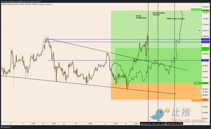 加密货币交易员 Krillin 在 X 平台上暗示,在 1 月 28 日至 29 日联邦公开市场委员会 (FOMC) 会议之前,比特币价格可能会在 10 万美元至 11 万美元之间横盘。 “除非发生意外情况,例如日本央行采取一些意想不到的货币政策,否则在本月底的 FOMC 会议结束之前,我们的价格可能会在 10 万至 11 万美元之间波动,”该交易员表示。