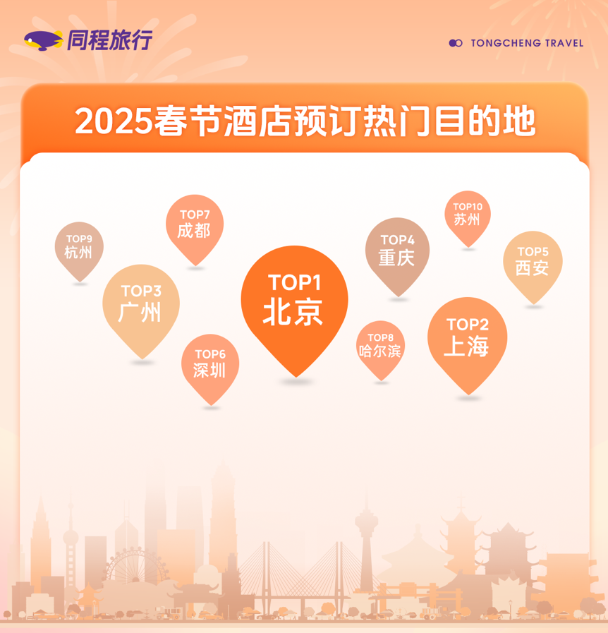 春节期间,北京不仅推出5600多项文化旅游活动,还向游客发放非物质文化遗产漫游图、庙会地图等,让市民和游客深度体验北京非物质文化遗产之美。苏州汇聚全国200多个非遗项目和传承人,举办首届“苏州年市·新年非遗游园会”。这些活动在吸引大量游客的同时,也带动了当地酒店预订量的增加。同程旅游数据显示,截至目前,北京、上海、广州、重庆、西安、深圳、成都、哈尔滨、杭州、苏州是春节假期国内酒店预订的热门目的地。