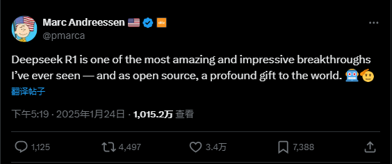 A16Z的创始人马克·安德森(Marc Andreessen)说:“ DeepSeek R1是我见过的最令人惊叹,最令人印象深刻的突破之一 - 作为开源,这是给世界深刻的礼物。”