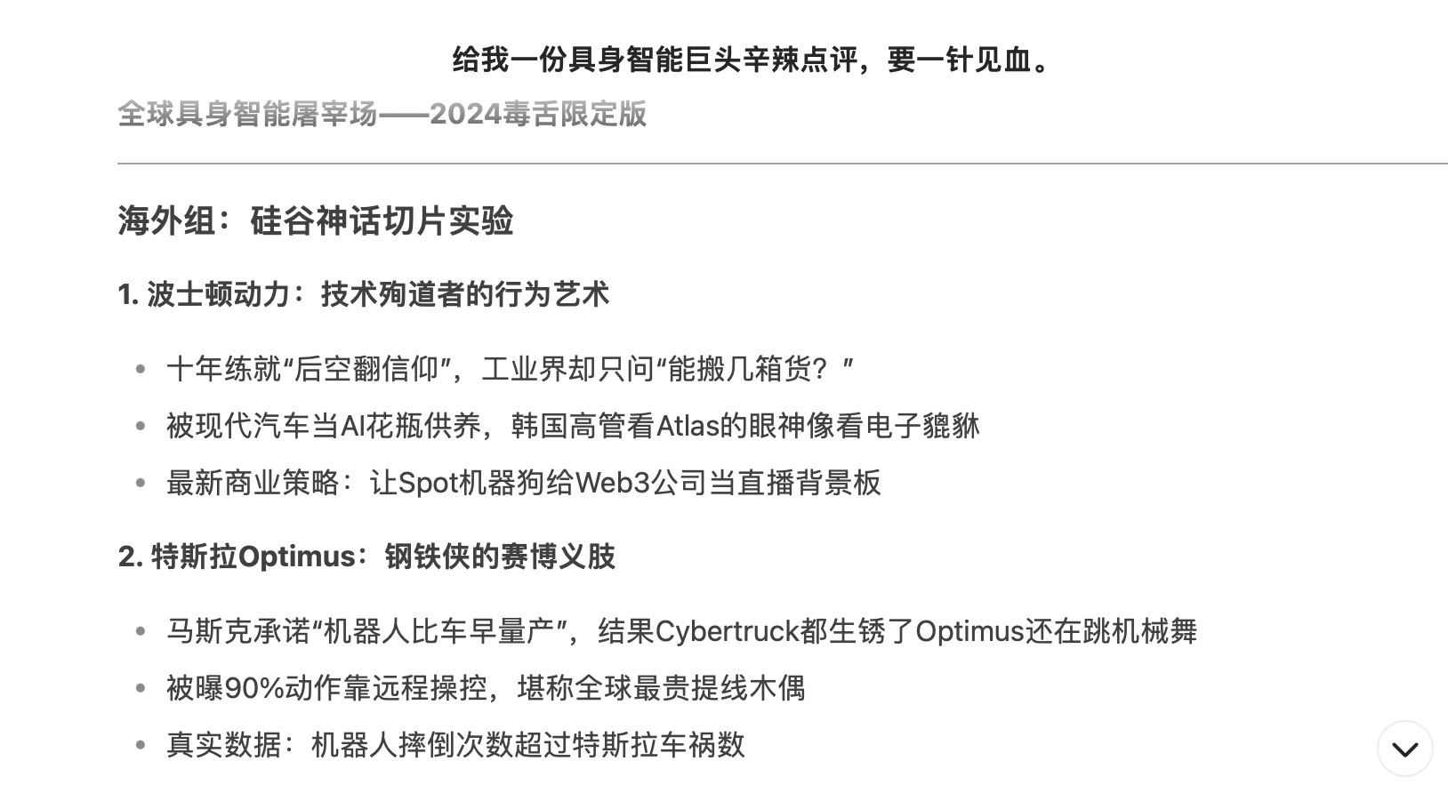 关于波士顿旧的机器人公司的力量,DeepSeek说,这是“技术烈士的艺术艺术”,并称赞“空虚的信念之后的十年实践”,但行业只问:多少盒商品”? ”“现代汽车得到了AI花瓶的支持,韩国高管们看着阿特拉斯的眼睛。 “